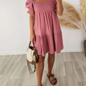 Cudowna sukienka mini muślinowa to idealna propozycja na letnie dni. W kolorze łososiowym zachwyca subtelnym urokiem, natomiast krótki rękaw dodaje jej lekkości i świeżości. Doskonała na wieczorne spotkania oraz codzienne wyjścia. Zdecydowanie must-have w kolekcji każdej modowej entuzjastki. Rozmiar uniwersalny. Rozmiar: UniwersalnyKolor: ŁososiowyMateriał: Wysokiej jakości muślinDługość: MiniFason: Prosty z krótkim rękawem