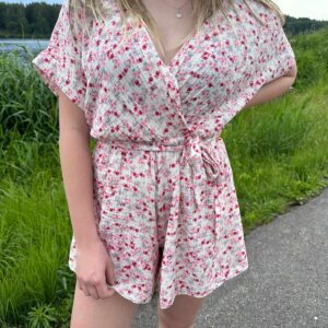 Przepiękny kombinezon muślinowy w kwiaty, idealny na letnie dni. Wykonany z 100% bawełny, zapewnia komfort i swobodę ruchów. Kwiatowy wzór dodaje delikatności i uroku, a luźny fason podkreśla kobiecą sylwetkę. Uniwersalny rozmiar sprawia, że kombinezon pasuje na różne sylwetki, idealny dla kobiet noszących rozmiary S, M, i L. Rozmiar: Uniwersalny (S/M/L)Kolor: Kwiatowy wzórMateriał: 100% bawełna