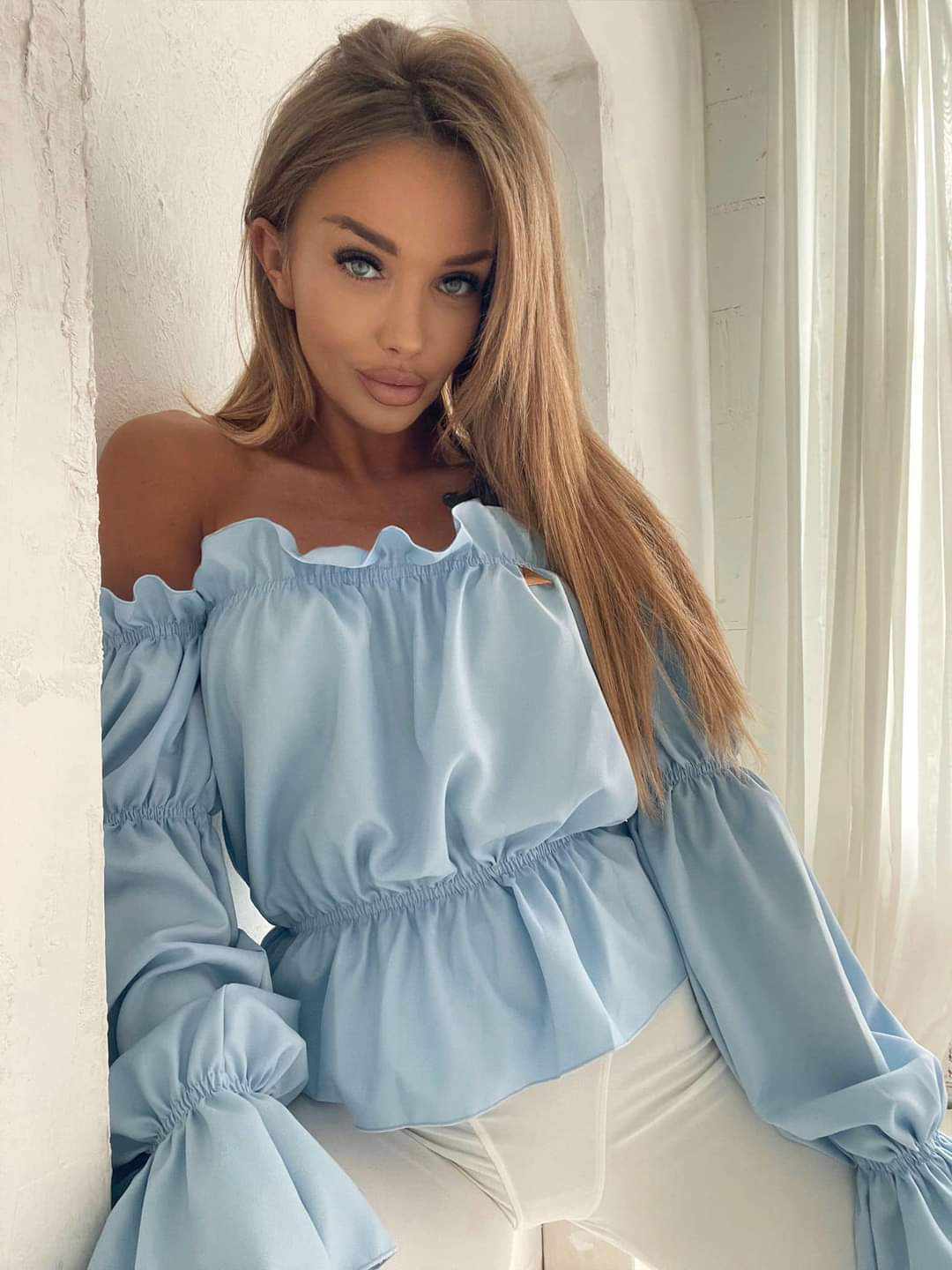 Bluzka hiszpanka błękitna
