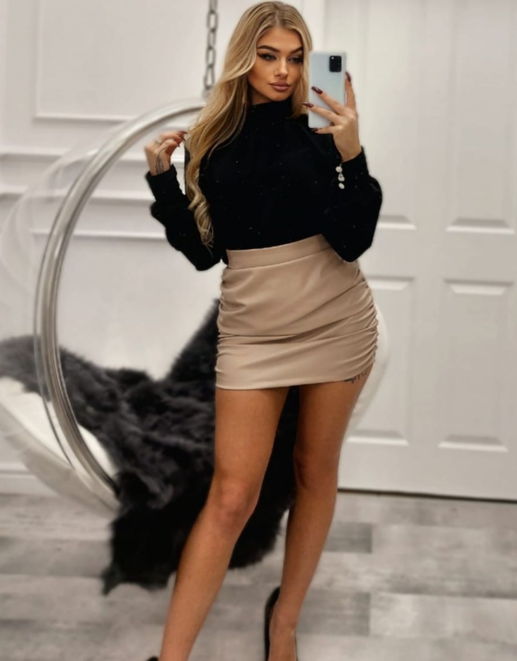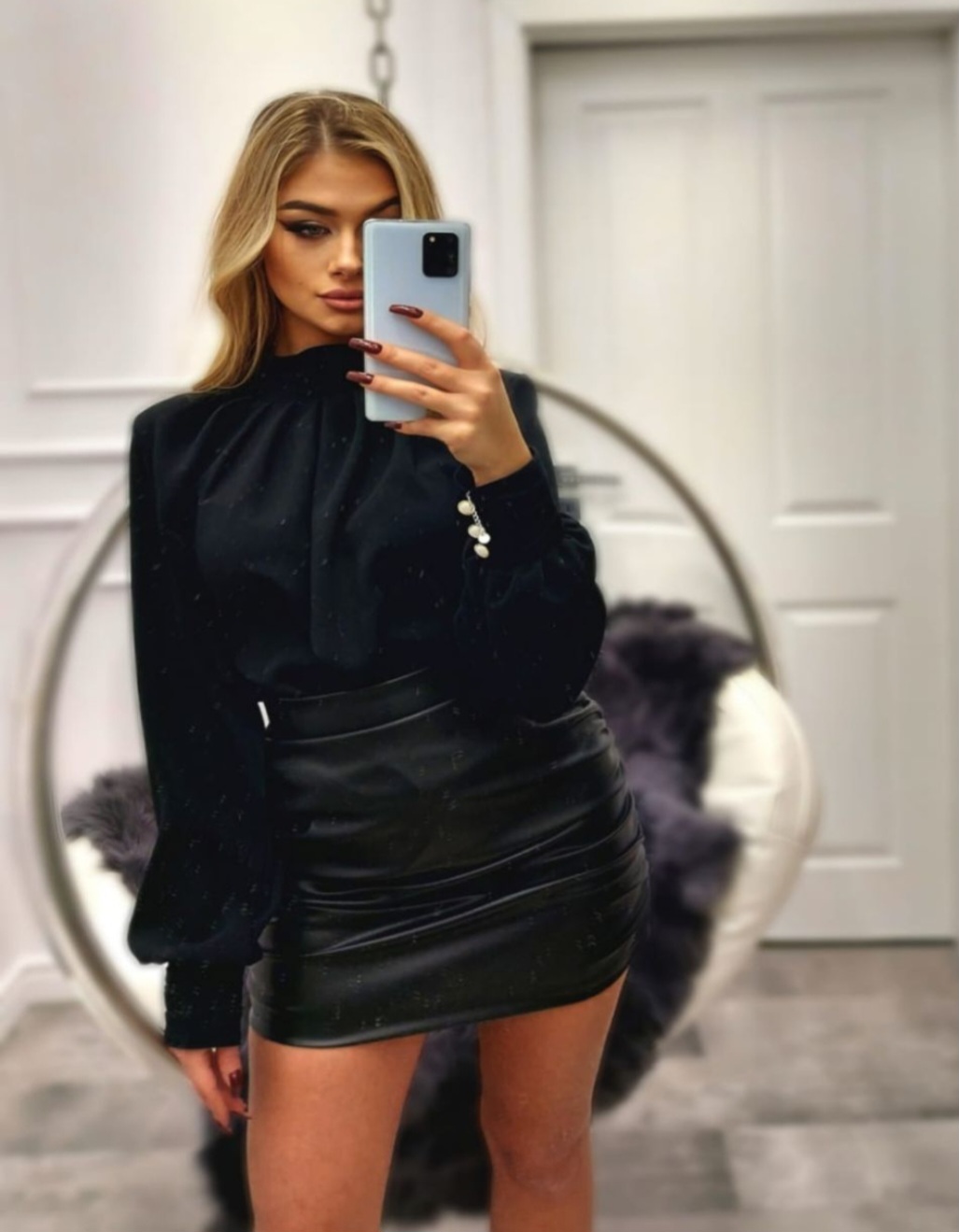 Bluzka koszulowa marszczona Gloria w kolorze czarnym to elegancki wybór dla kobiet ceniących styl i komfort. Wykonana przez polskiego producenta, charakteryzuje się subtelnym marszczeniem, które dodaje jej unikalnego uroku. Model dostępny w rozmiarze S, posiada długi rękaw zdobiony trzema ozdobnymi guzikami, które wprowadzają do całości odrobinę wyrafinowania. Bluzka zapinana jest z tyłu na zamek błyskawiczny, co zapewnia łatwość zakładania oraz idealne dopasowanie do sylwetki. Idealna na różnorodne okazje, z łatwością wpisze się w każdą stylizację, zarówno do biura, jak i na wieczorne wyjścia.