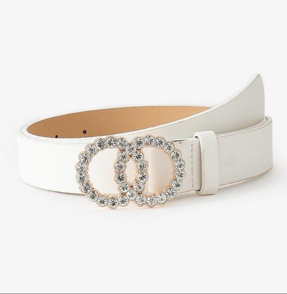 Damski pasek skórzany biały z diamentami