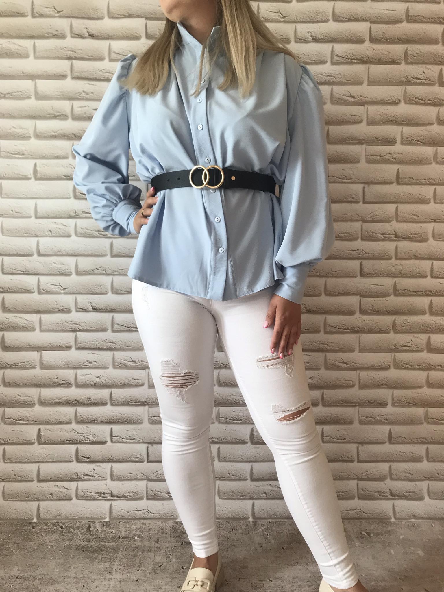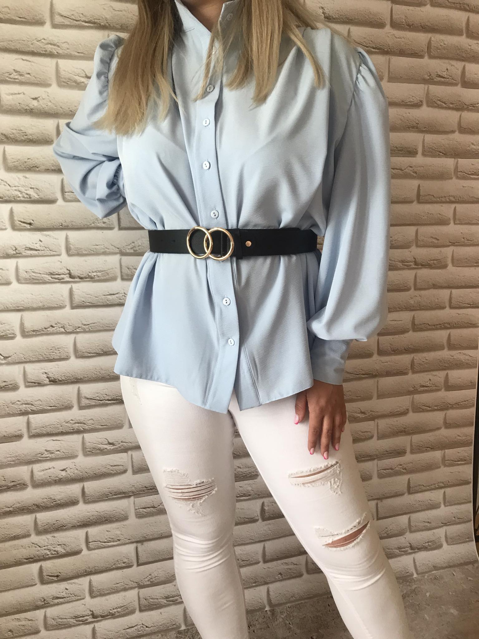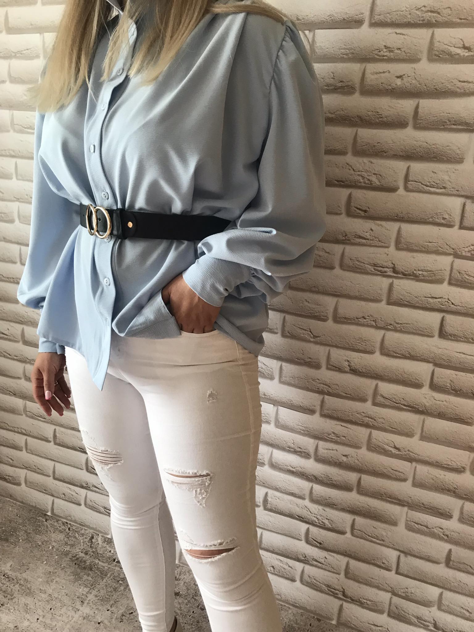 Koszula widoczna na zdjęciu jest w sprzedaży bez paska.