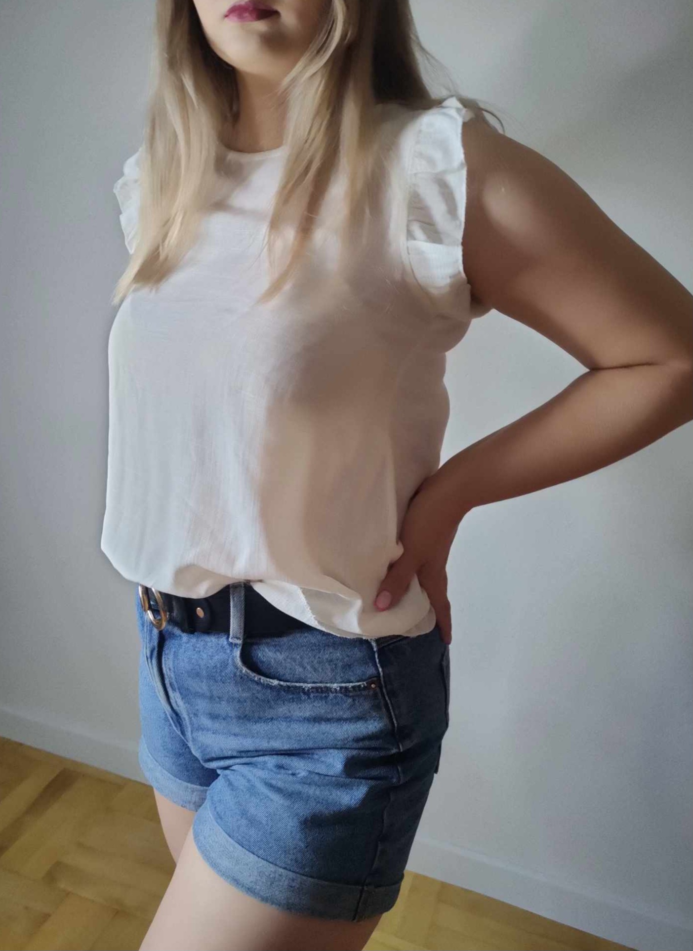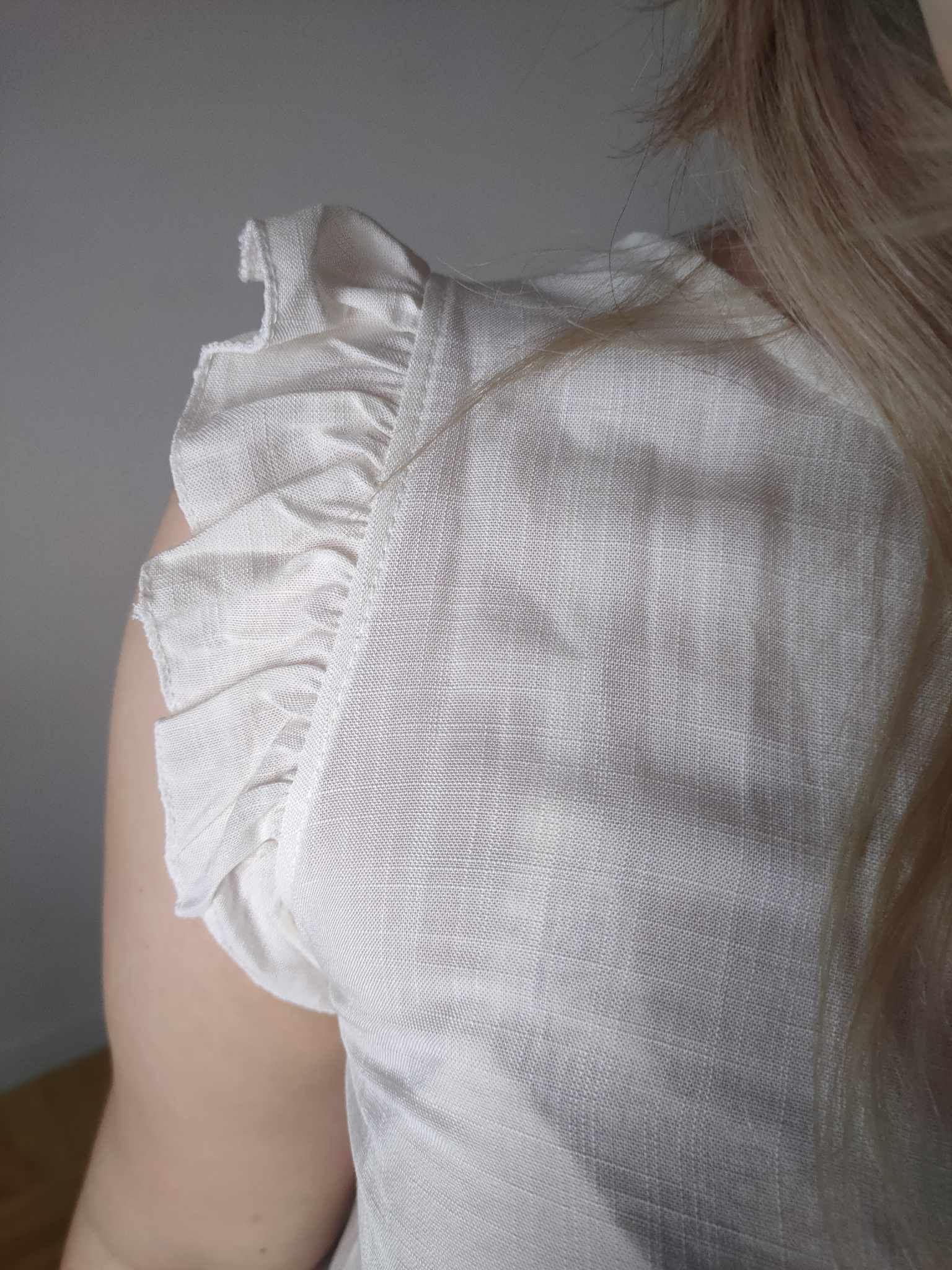 Ożyw swoją garderobę tą radosną i świeżą bluzką. Ta bluzka bez rękawów jest nie tylko ucieleśnieniem letniej radości, ale także przyciąga uwagę swoim wyjątkowym krojem i detalem. Falbanki na ramionach dodają kobiecego uroku i delikatności, tworząc subtelną grę z klasycznym stylem.