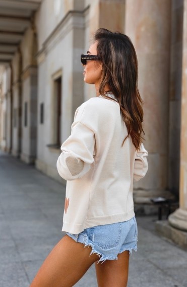 Krótki rozpinany sweterek z ozdobnymi sercami heart