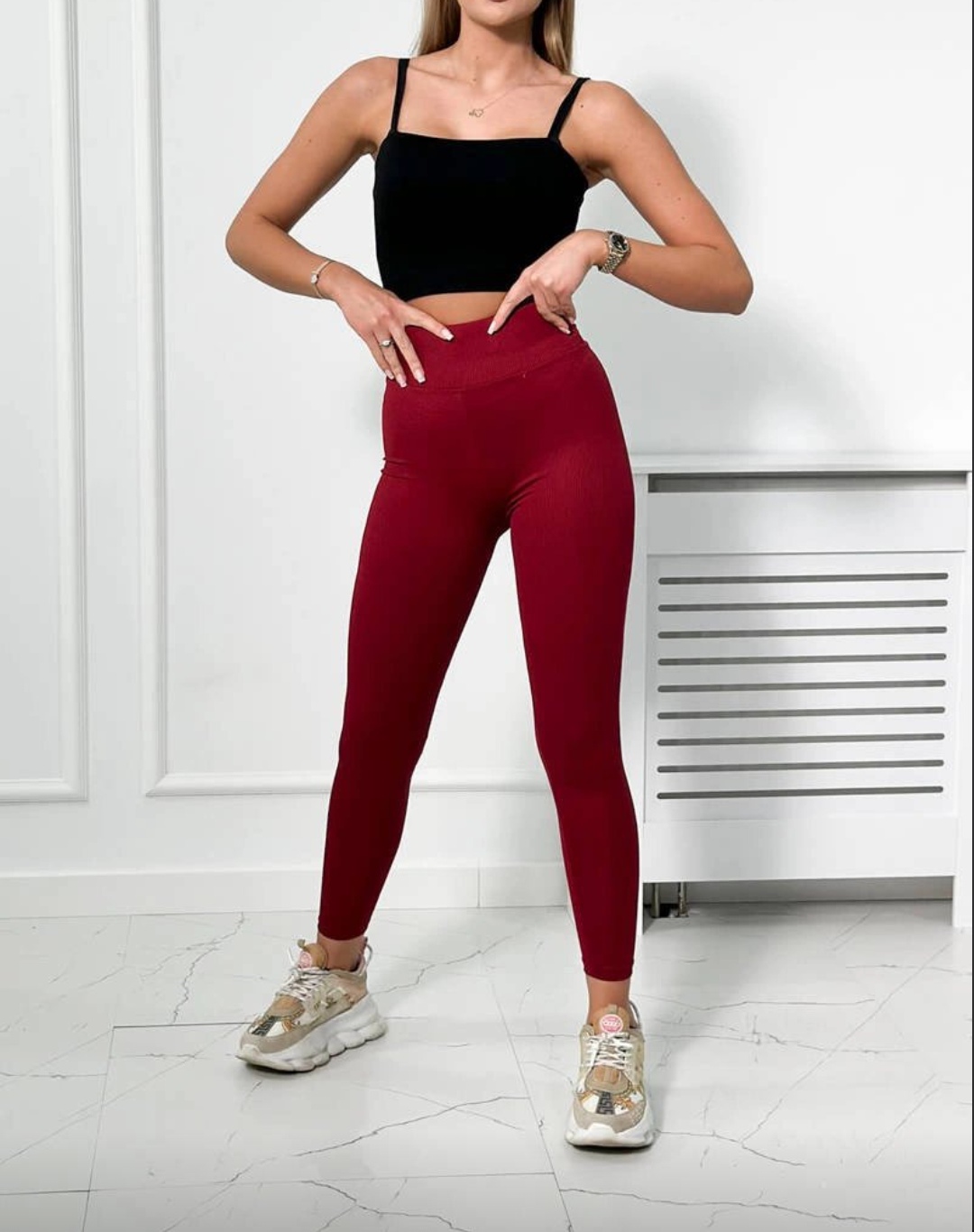 Legginsy prążkowane – bordowe