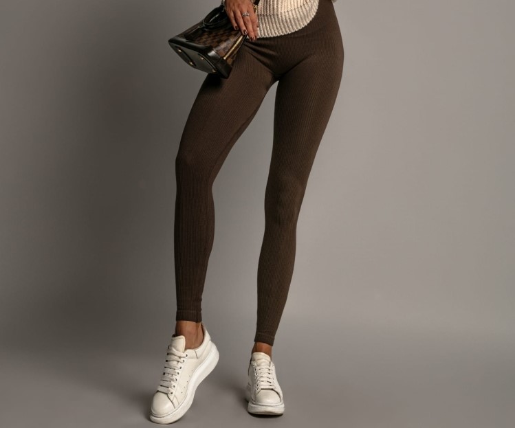 Legginsy prążkowane – czekoladowe
