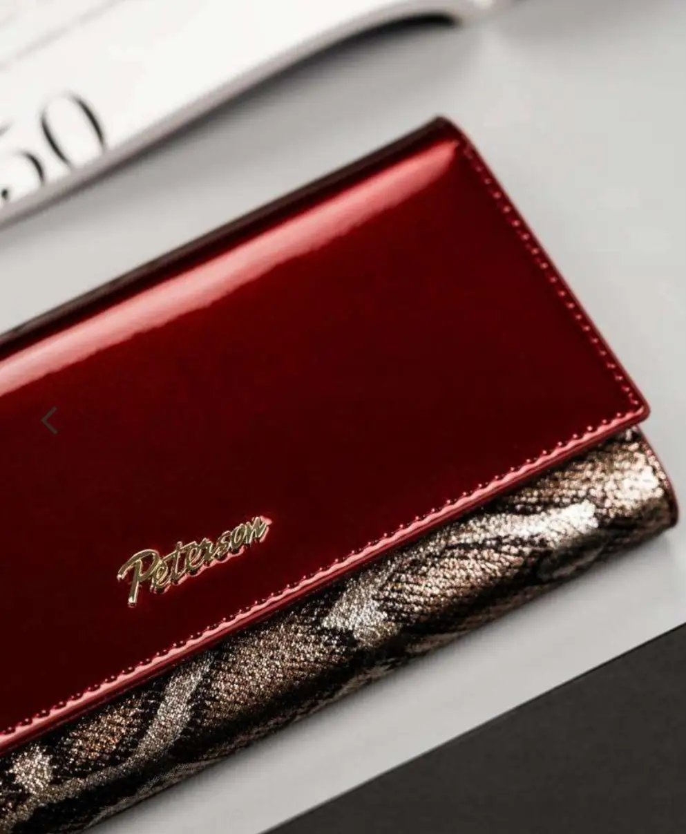 Lakierowany portfel damski z wężowym wzorem — Peterson