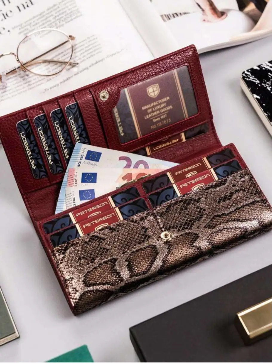 Skórzany portfel damski z wężowym wzorem Peterson