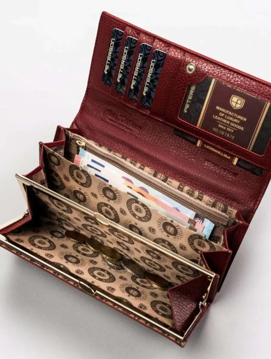 - 1 schowek na suwak w centralnej części portfela.