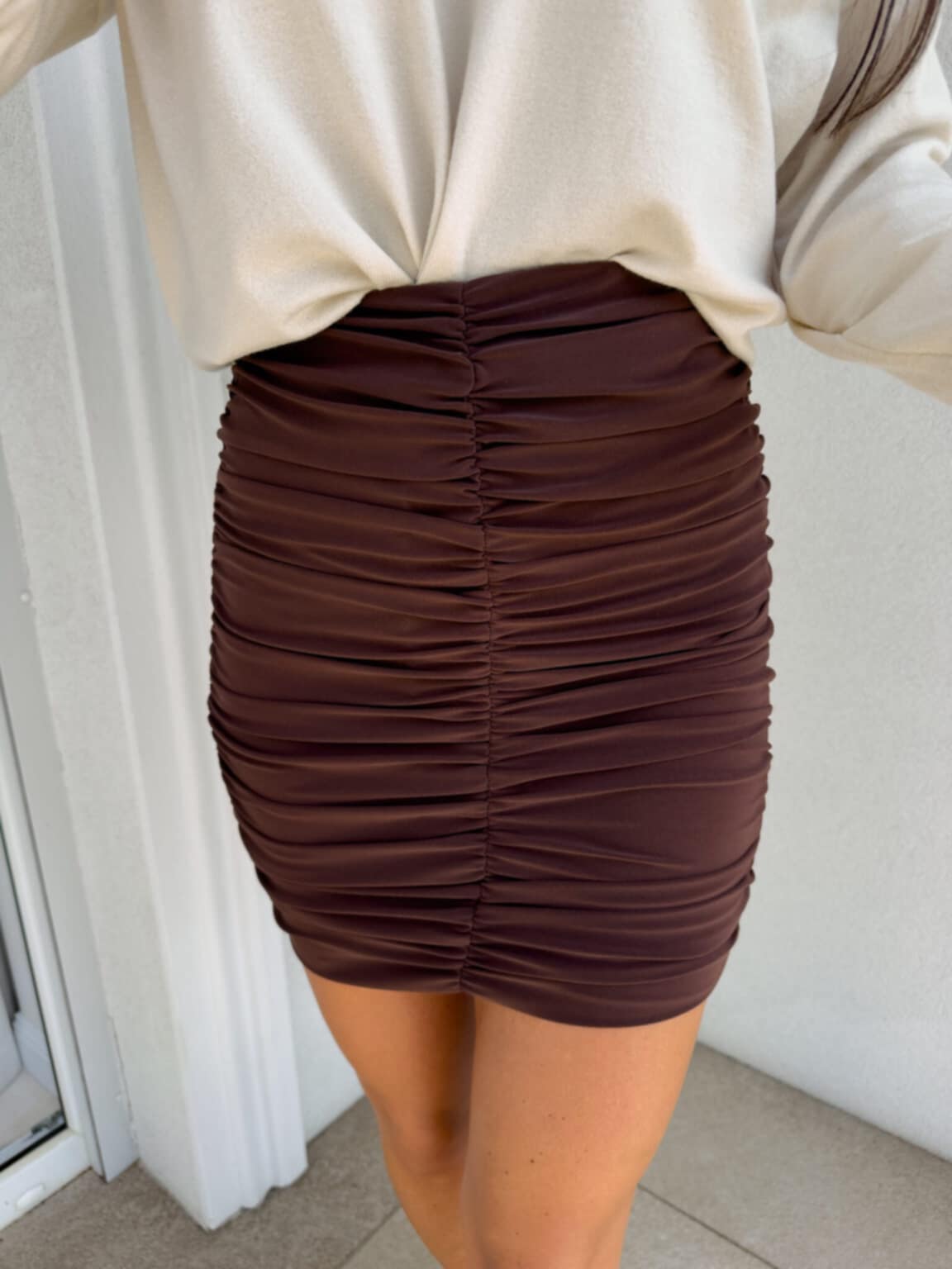 Spódnica marszczona w kolorze czekoladowym to wyjątkowy element garderoby, który łączy elegancję z uniwersalnością. Wykonana z materiałów najwyższej jakości, zapewnia komfort noszenia oraz długotrwałą trwałość. Jej unikalny krój z marszczeniami subtelnie podkreśla atuty sylwetki, zamaskowując jednocześnie ewentualne niedoskonałości. Czekoladowy odcień spódnicy wprowadza do stylizacji nutę klasycznej elegancji, co sprawia, że doskonale komponuje się z różnorodnymi bluzkami i dodatkami. Idealna zarówno na co dzień, jak i na przy specjalnych okazjach, ta spódnica z pewnością wzbogaci każdą outfit, dodając mu szyku i wyrafinowania. Wybierz tę spódnicę, aby zyskać modowy must-have, który nigdy nie wyjdzie z mody.