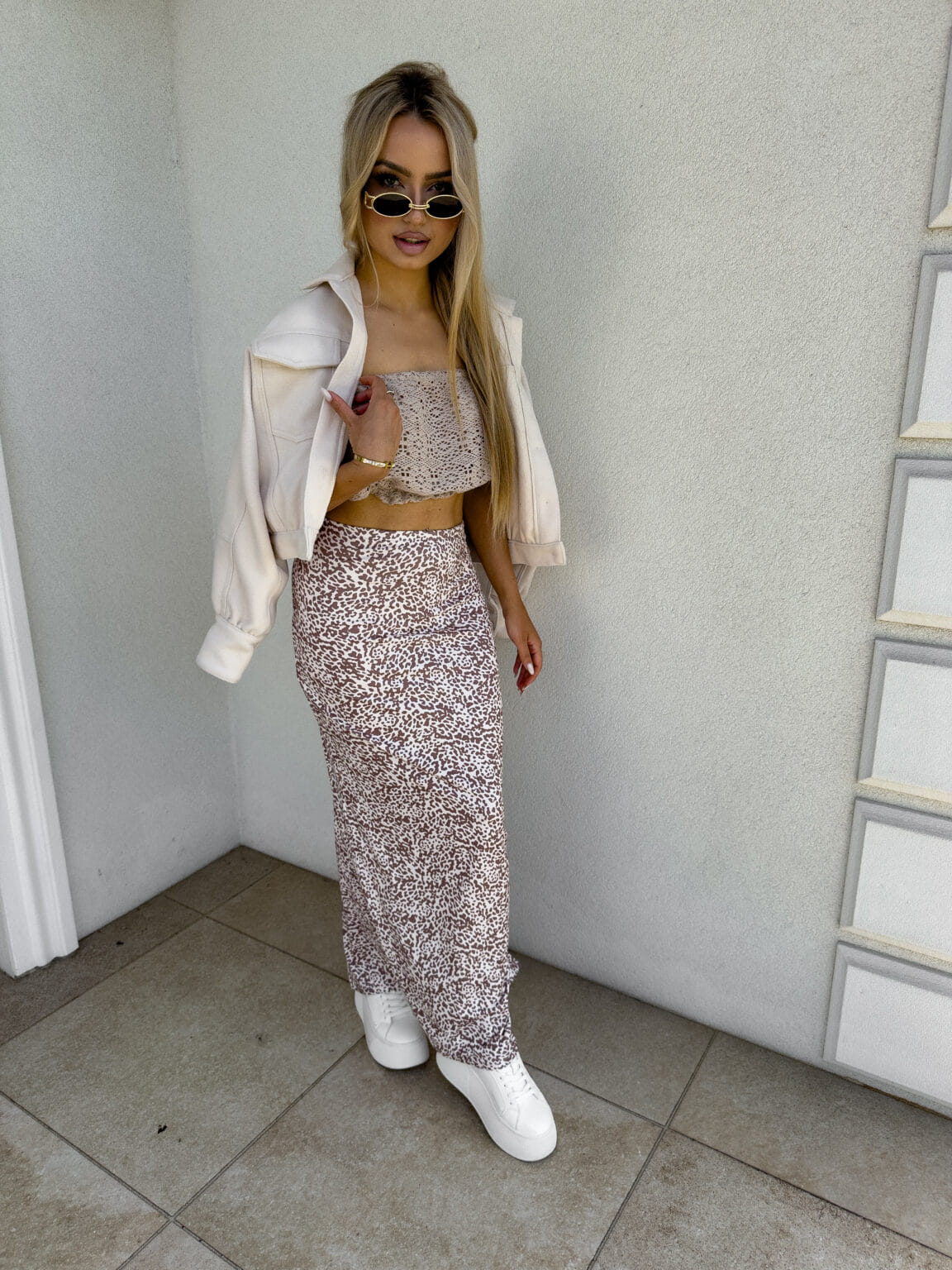 Spódnica Vogue lampart to elegancka, klasyczna maxi spódnica, która łączy w sobie styl oraz wygodę. Wykonana z wysokiej jakości materiałów, zapewnia komfort noszenia oraz świetne dopasowanie do sylwetki. Model wyróżnia się efektownym rozcięciem z tyłu, które dodaje całości subtelnego seksapilu, a jednocześnie pozwala na swobodę ruchów. Idealna zarówno na codzienne wyjścia, jak i na bardziej formalne okazje. Spódnica dostępna jest w modnym wzorze lamparta, który z pewnością przyciągnie uwagę i doda charakteru każdej stylizacji. W połączeniu z elegancką bluzką lub casualowym topem, stworzy niepowtarzalny look, który zachwyci każdego. Wzbogać swoją garderobę o ten niezwykle stylowy i uniwersalny element, który sprawdzi się w każdej porze roku.