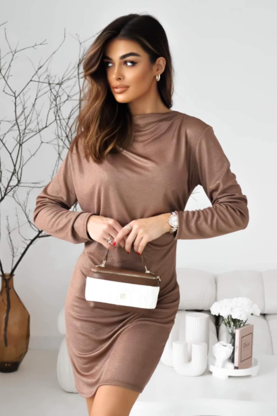 Odkryj naszą olśniewającą sukienkę błyszczącą w delikatnym odcieniu cappuccino, idealną na każdą wyjątkową okazję. Ta uniwersalna sukienka doskonale dopasowuje się do sylwetki, zapewniając komfort i elegancję na każdym kroku. Wykonana z wysokiej jakości materiału, który składa się w 70% z poliestru i 30% z wiskozy, jest nie tylko przyjemna w noszeniu, ale także trwała i łatwa w pielęgnacji. Sukienka błyszcząca to doskonały wybór dla kobiet ceniących styl i elegancję. Wybierz tę sukienkę i dodaj wyjątkowego blasku do swojej garderoby.