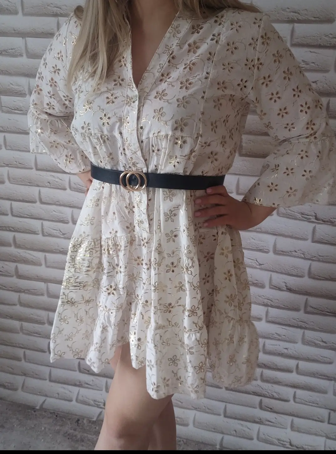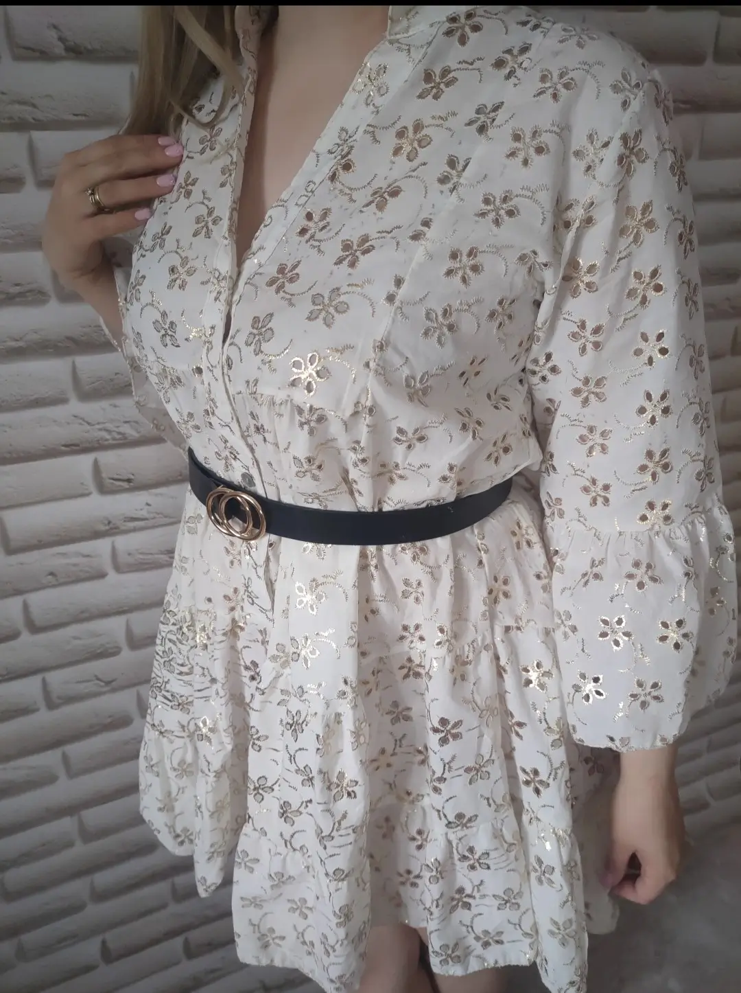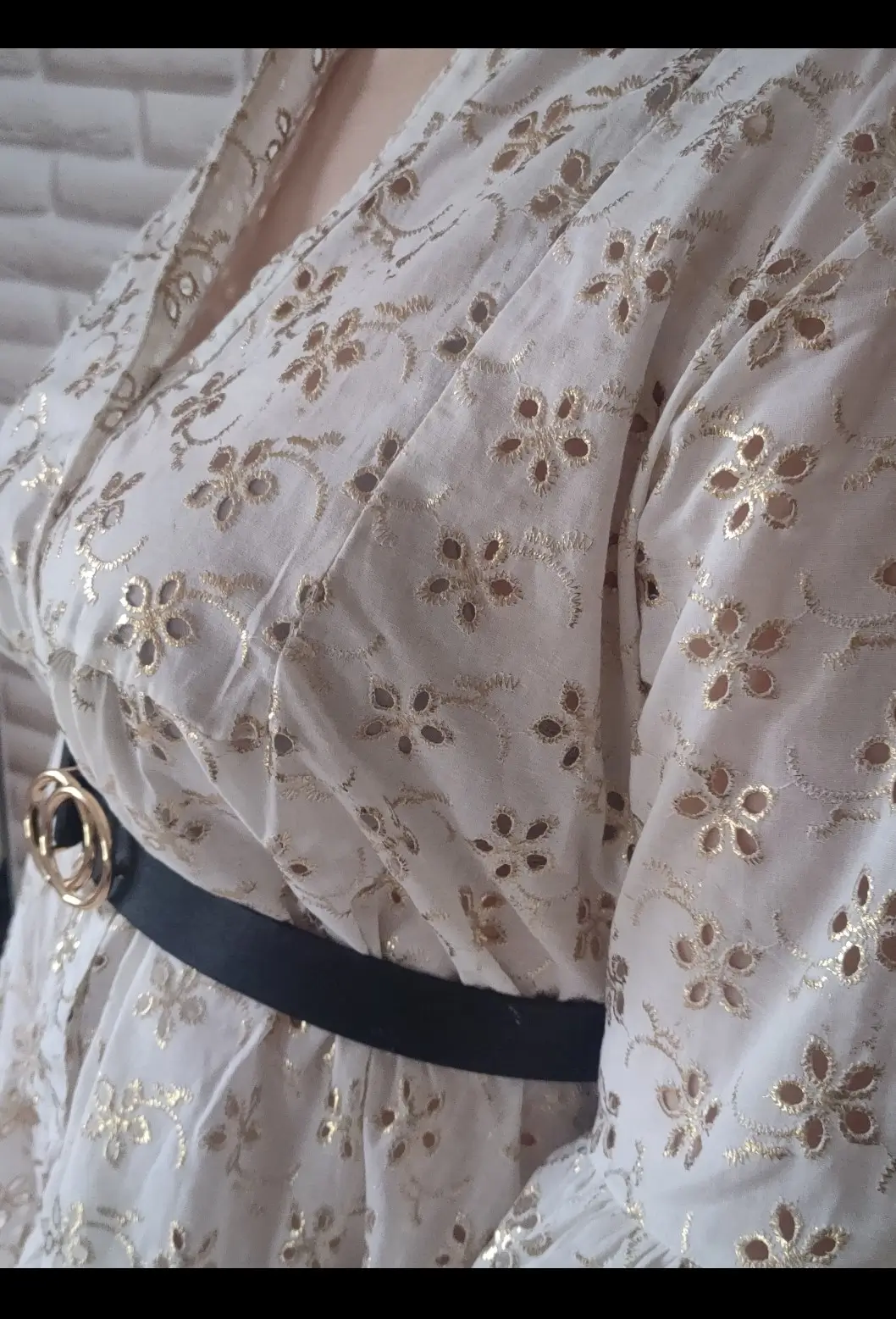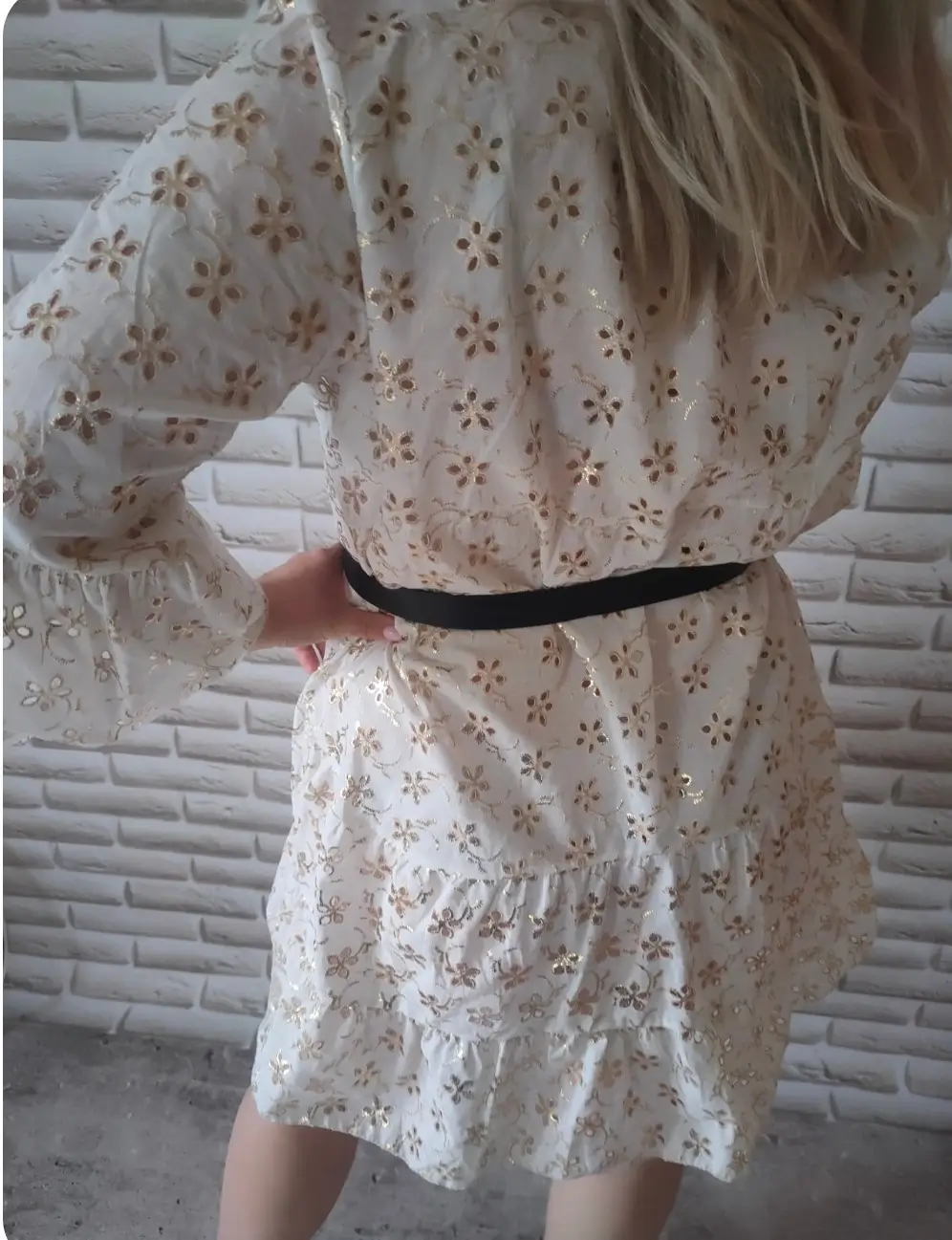 Ta sukienka to kwintesencja delikatnej elegancji, dostępna w rozmiarze uniwersalnym, aby pasować na różnorodne sylwetki.