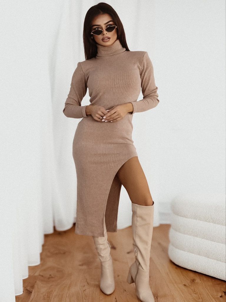 Sukienka golfowa w odcieniu beżu to wyjątkowy element garderoby, idealny na różne okazje. Wykonana z miękkiej dzianiny w prążek, zapewnia komfort noszenia oraz elegancki wygląd. Fason z wycięciem na nogę dodaje jej niepowtarzalnego uroku i zmysłowości. Sukienka jest dostępna w rozmiarze S/M, co sprawia, że doskonale dopasowuje się do sylwetki. Producentem jest polska marka, co gwarantuje wysoką jakość wykonania. Materiał to starannie dobrana kompozycja: 49% wiskozy, 25% nylonu oraz 26% poliester, co sprawia, że sukienka jest nie tylko piękna, ale i trwała. To idealny wybór dla kobiet ceniących sobie styl, komfort i lokalną produkcję.