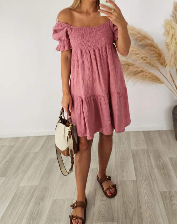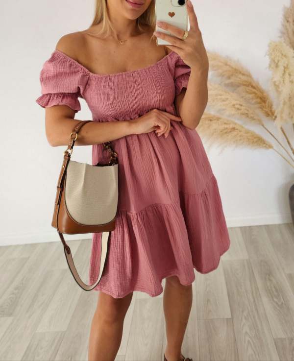 Cudowna sukienka mini muślinowa to idealna propozycja na letnie dni. W kolorze łososiowym zachwyca subtelnym urokiem, natomiast krótki rękaw dodaje jej lekkości i świeżości. Doskonała na wieczorne spotkania oraz codzienne wyjścia. Zdecydowanie must-have w kolekcji każdej modowej entuzjastki. Rozmiar uniwersalny.